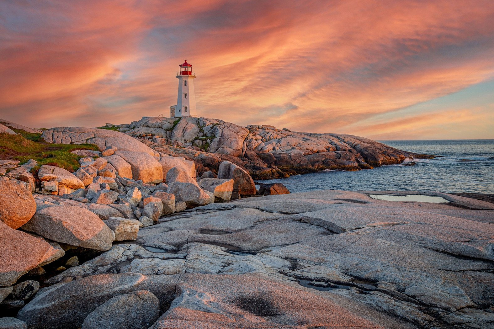 De rit langs de beroemde Lighthouse Route brengt je naar het vissersdorp Peggy’s Cove, een van de meest iconische plekken van Nova Scotia. Het dorp wordt omringd door ruige granietrotsen en open kustlandschap, met wandelpaadjes die je naar de wereldberoemde vuurtoren leiden. De combinatie van oceaan, rotsen en kleurrijke vissershuisjes zorgt voor een sfeer die je nergens anders vindt.