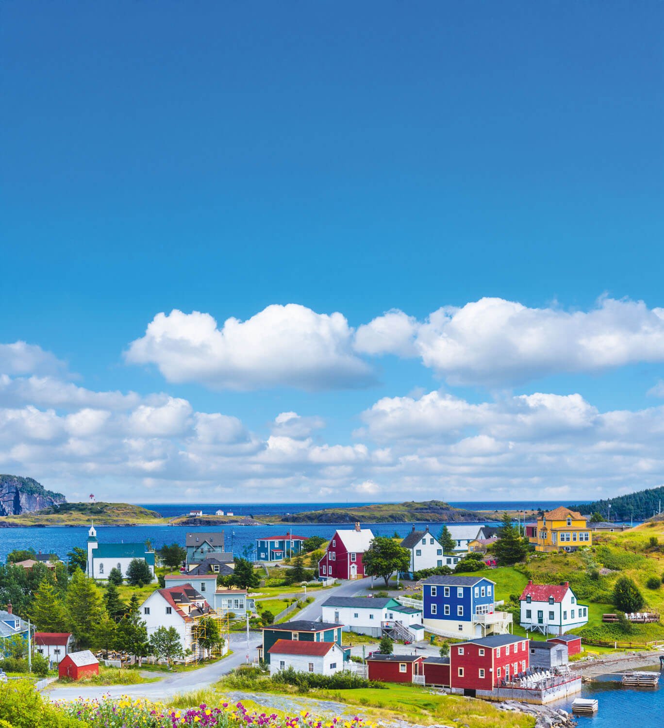Vanuit Argentia vaar je naar Newfoundland. In St John’s slenter je door smalle straatjes met “jellybean houses”, kleurrijke rijhuizen die de stad haar unieke uitstraling geven. In Trinity wandel je tussen gerestaureerde houten huizen en beleef je het verleden via het openlucht-theater van Trinity Pageant.